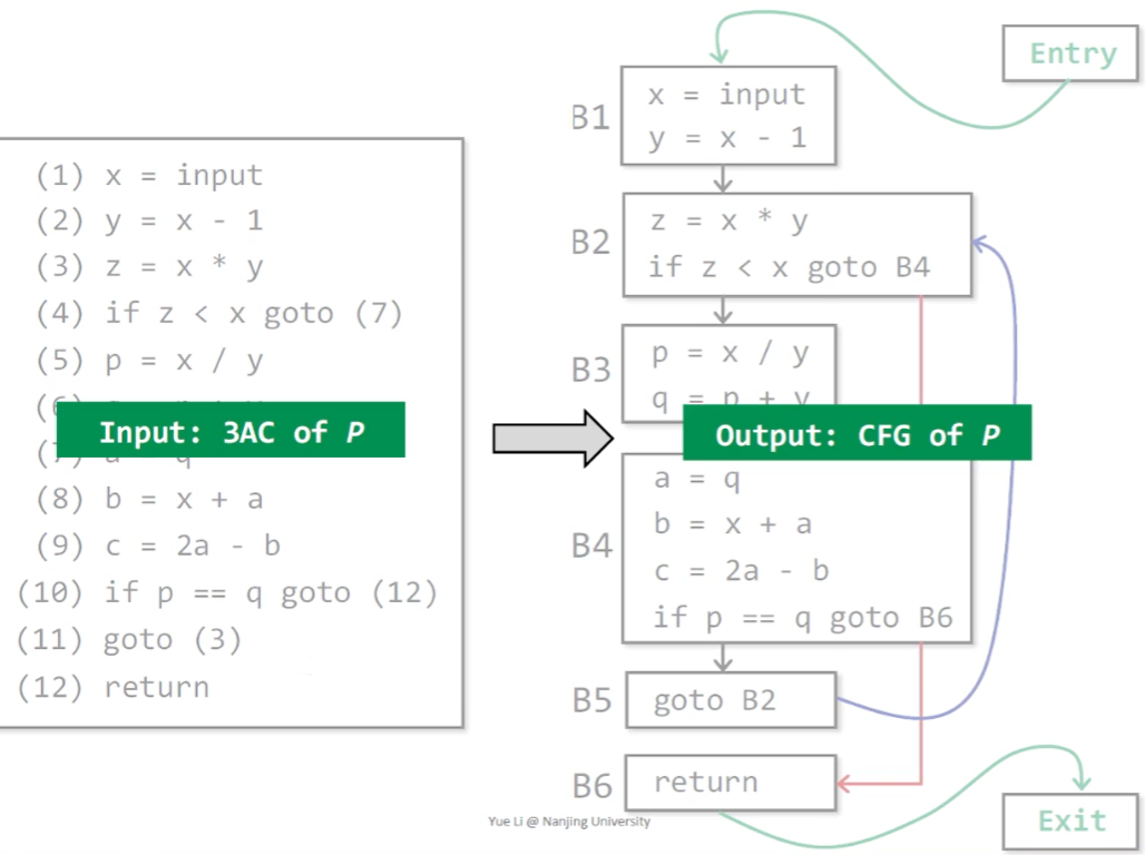 - 输出:程序 P 的基本块