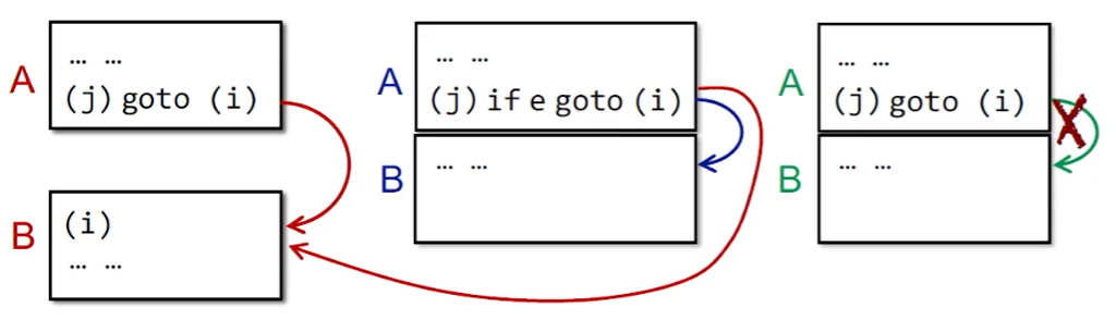 - A 的末尾紧接着 B 的开头,且 A 的末尾不是一条无条件跳转指令。
