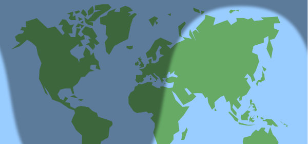 This clock is inaccurate because it doesn't take into account delimited time zones. It takes GMT as a starting point, and divides the map in equal parts.