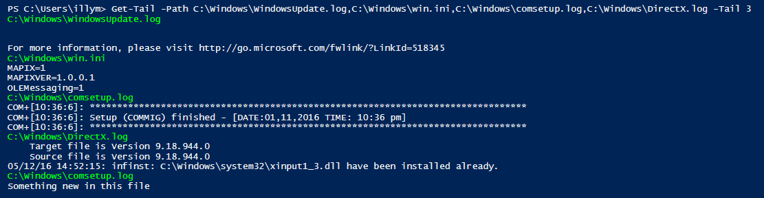 Get-Tail -Path C:\Windows\WindowsUpdate.log,C:\Windows\win.ini