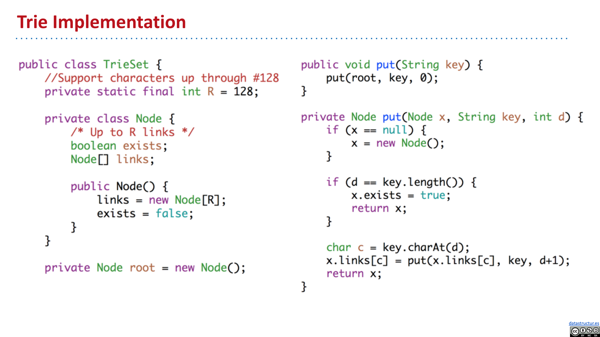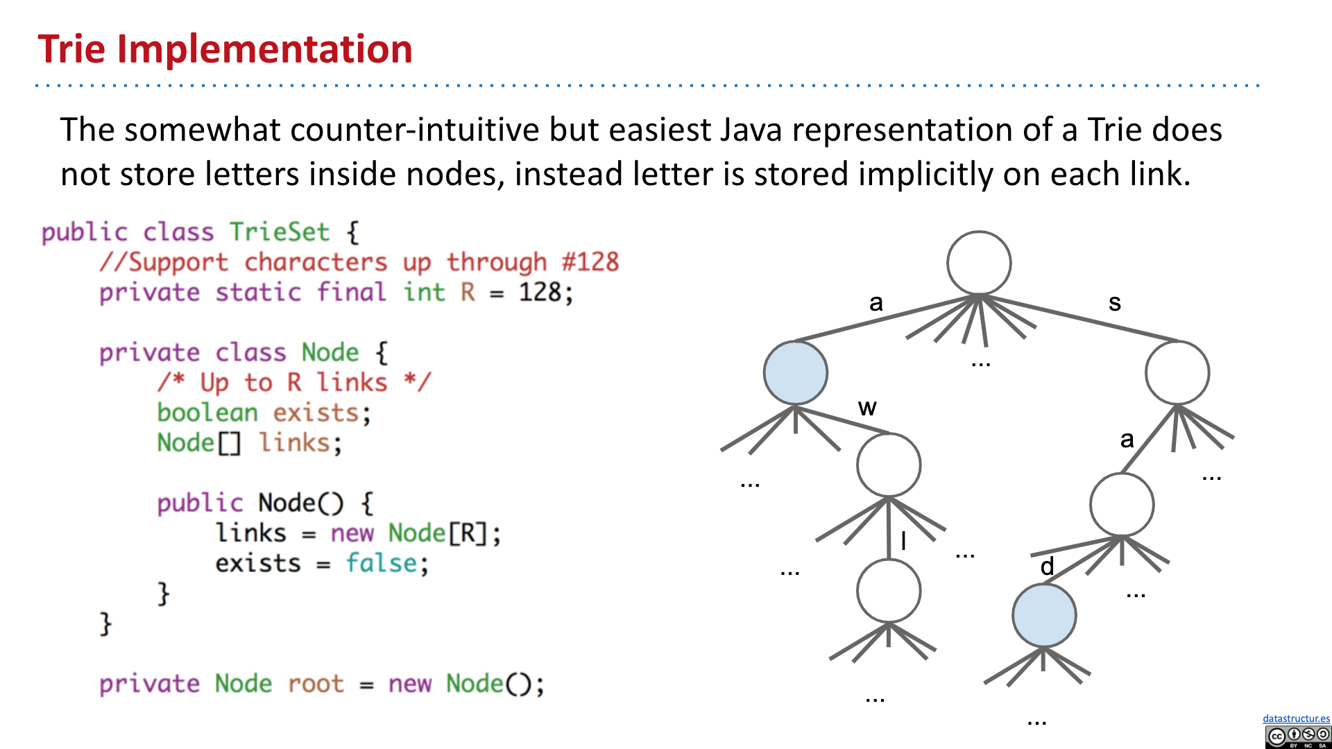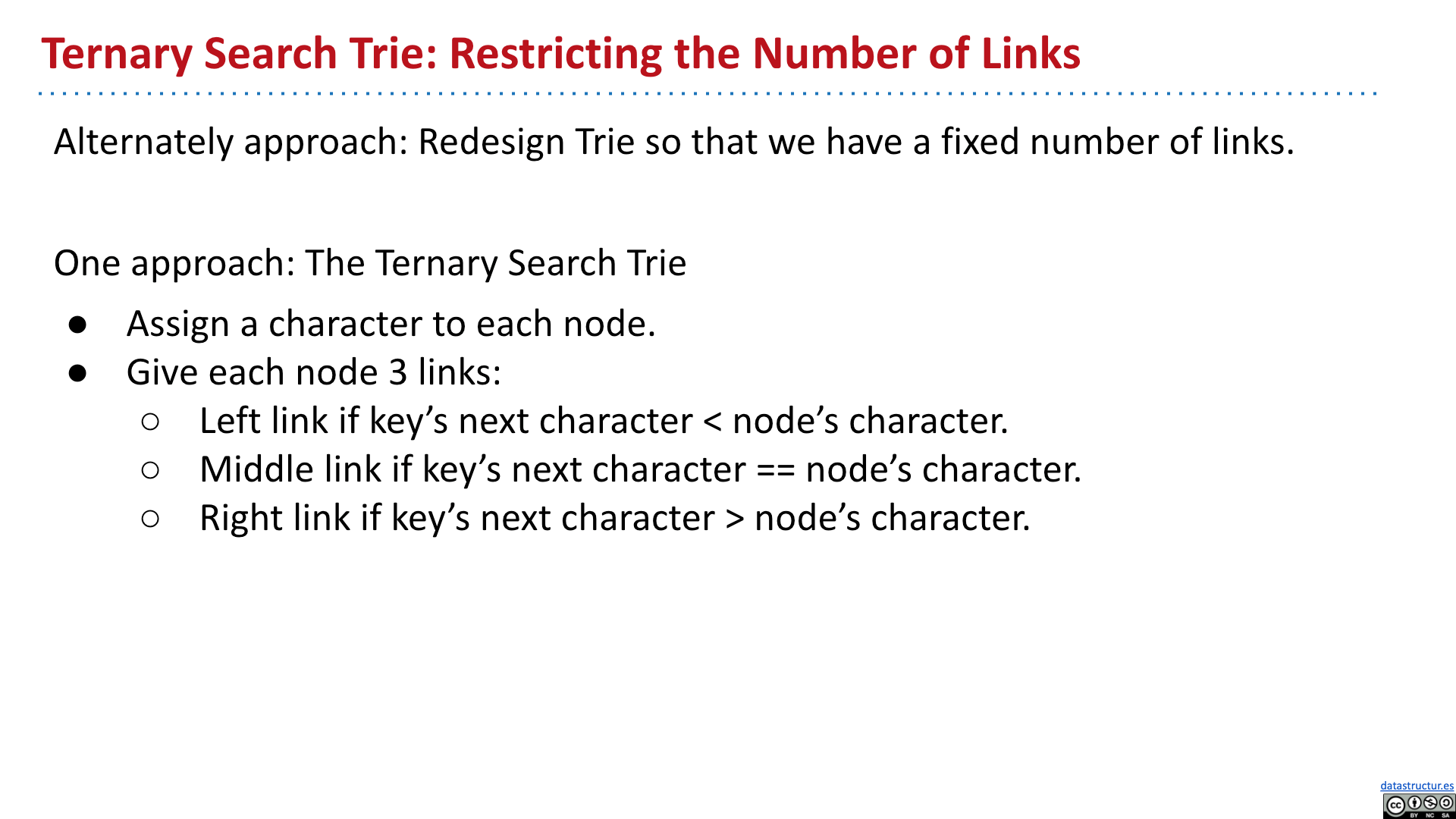 # Summary - Introduction - Tries - Tries Implementation - Child Link Optimization - Ternary Search Tries 2019 Lecture 21 Prefix Operations and Tries #105 # Introduction   # Tries       # Tries Implementation and Usage          # Child Link Optimizations       # Ternary Search Tries