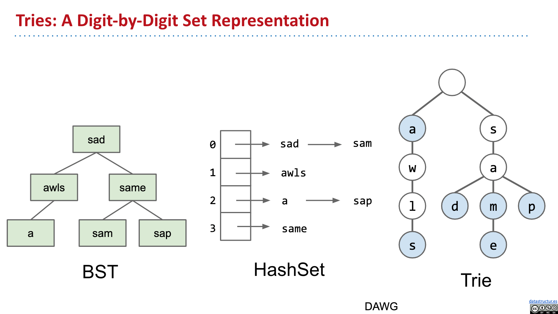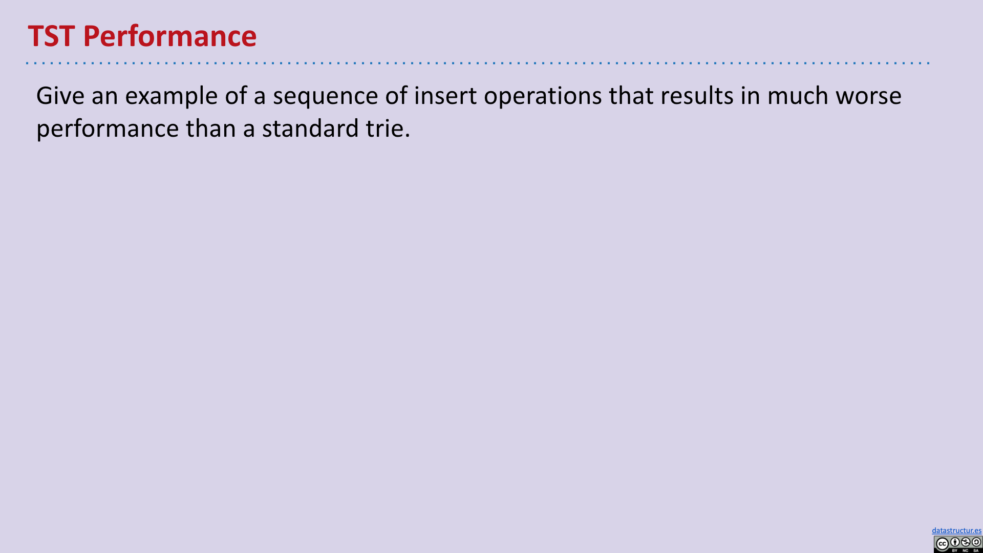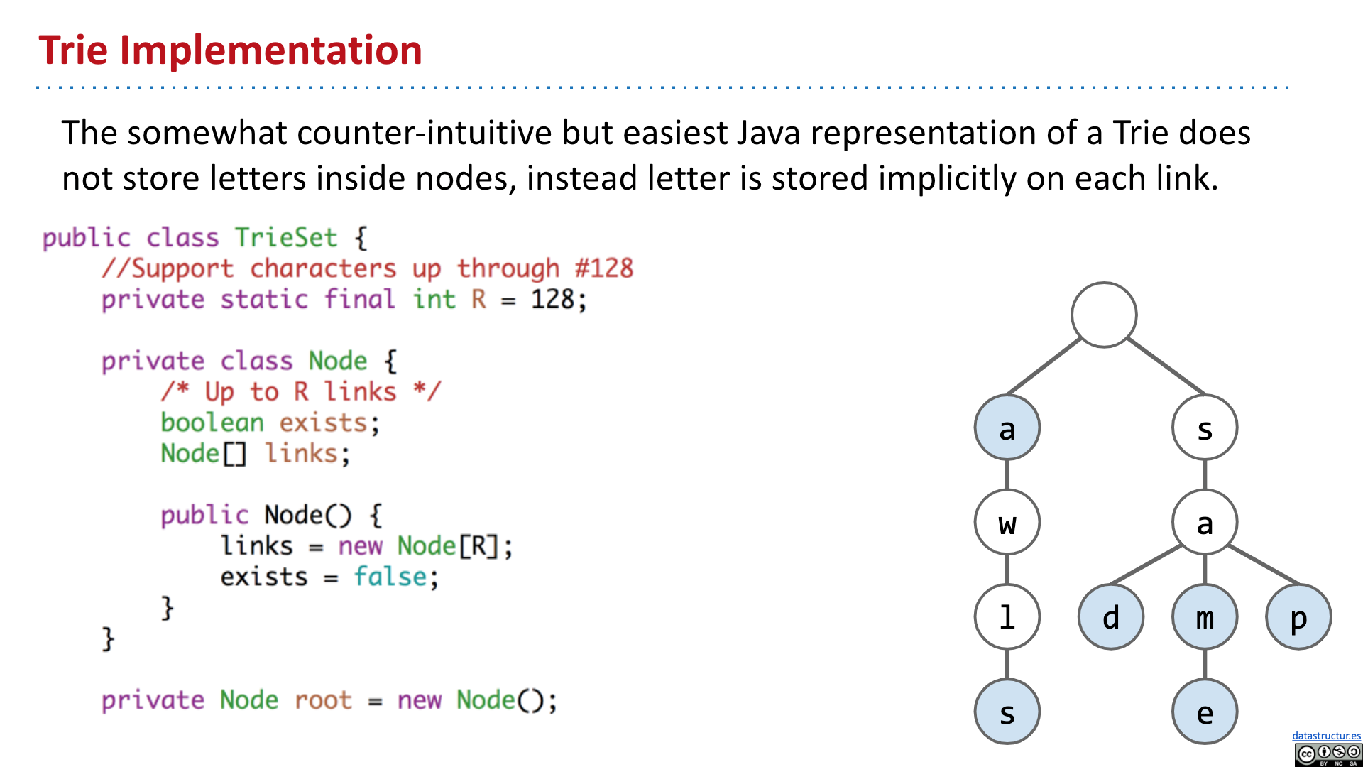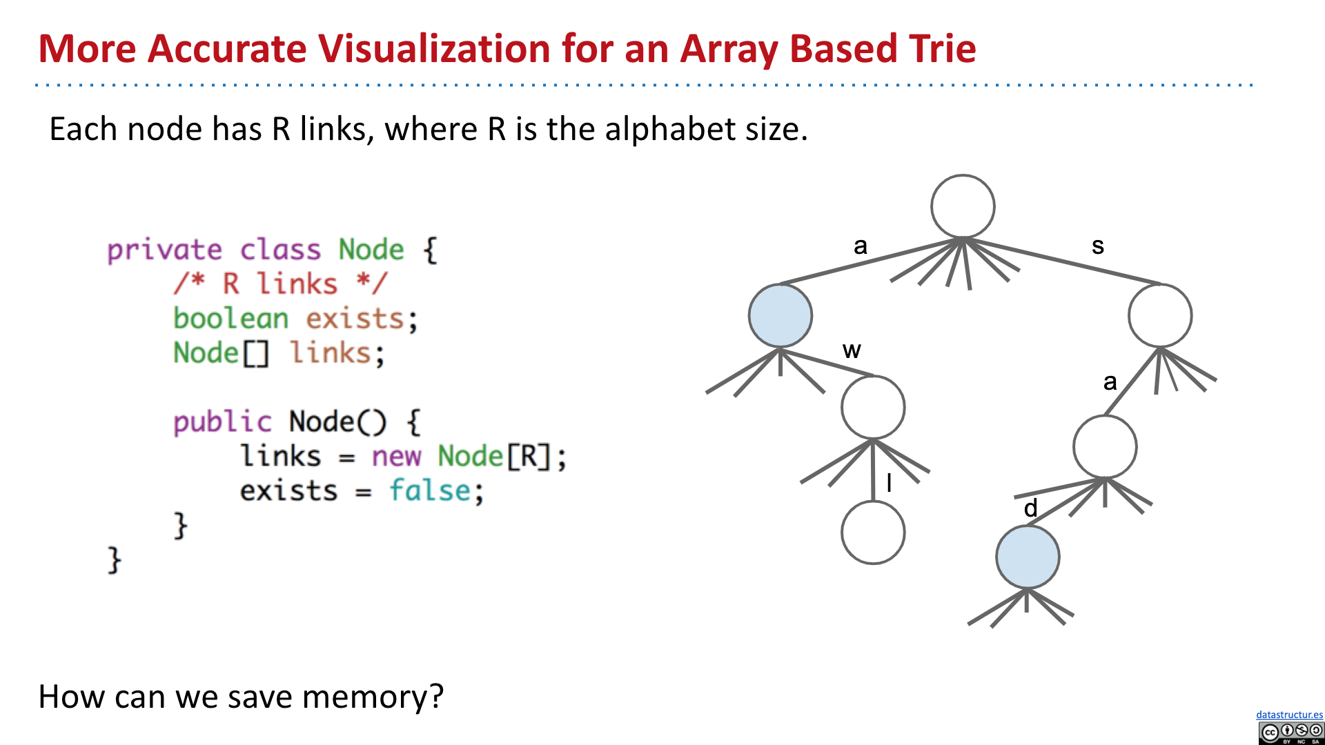 # Summary - Introduction - Tries - Tries Implementation - Child Link Optimization - Ternary Search Tries 2019 Lecture 21 Prefix Operations and Tries #105 # Introduction   # Tries       # Tries Implementation and Usage          # Child Link Optimizations       # Ternary Search Tries